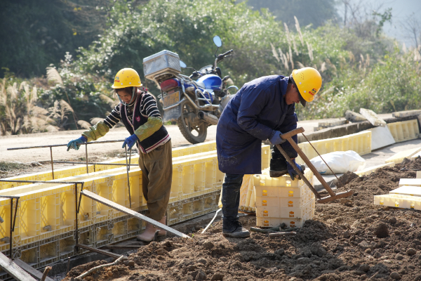 相同炽热的场景也出现在毛尖镇江洲村。江洲大坝里,工人们拌浆、砌石、勾缝,一道道灌溉排水水沟在田间延伸。视野所及,田成方、路相连、渠相通的格式已初具雏形。